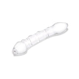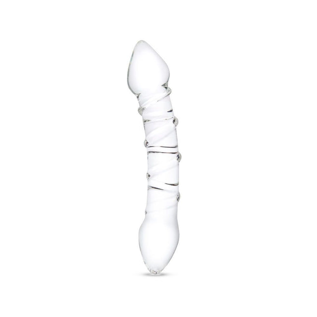 This versatile 7.25" Girthy Double-Ended Swirly Dildo enhances orgasm with a curved, ergonomic design and raised swirls along the shaft to enhance the feel as it goes in and out. Use this dildo solo to explore vaginal or anal penetration during masturbation, or give a partner an orgasmic internal massage. The clear design lets you see the stimulation taking place inside you, while the smooth surfaces make it easy to clean and compatible with all lubes!