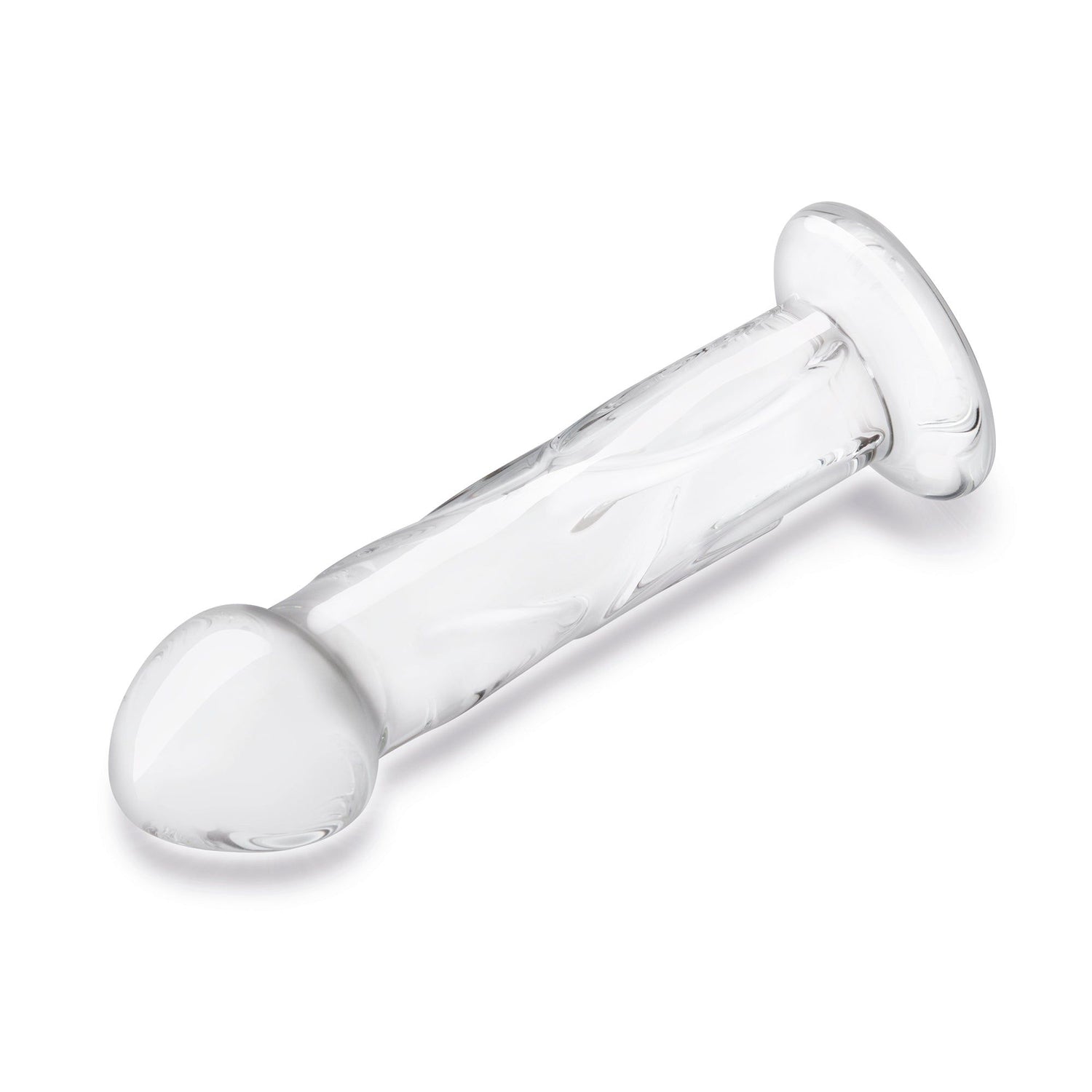 Get filled with realness from the 6" Glass Dildo With Veins & Flat Base by Gläs. Experience girthy texture with a tapered base perfectly crafted for indulgent, safe anal penetration and a bulbous head for prodding your pleasure zones to perfection.