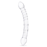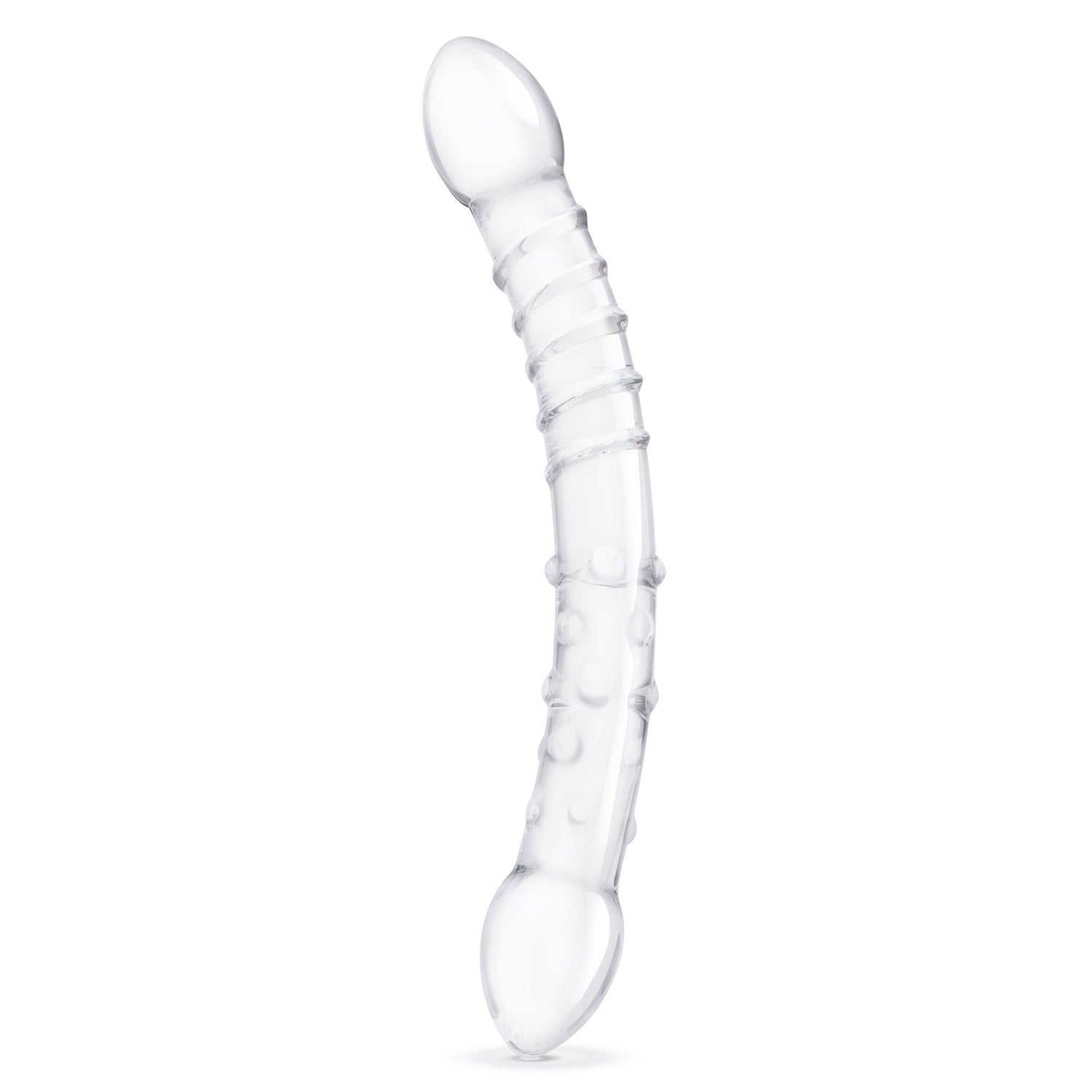 Get spread with sensations from the 12" Girthy Double Trouble Glass Dildo by Gläs. This extra-thick pleasure prodder features two sides of stimulation swirled and bumpy texture options that will take you to pleasure town. Perfectly curved for G-Spot or P-Spot stimulation, this double play of decadence is great for couple's play or for exploring the depths of your sensuality solo.