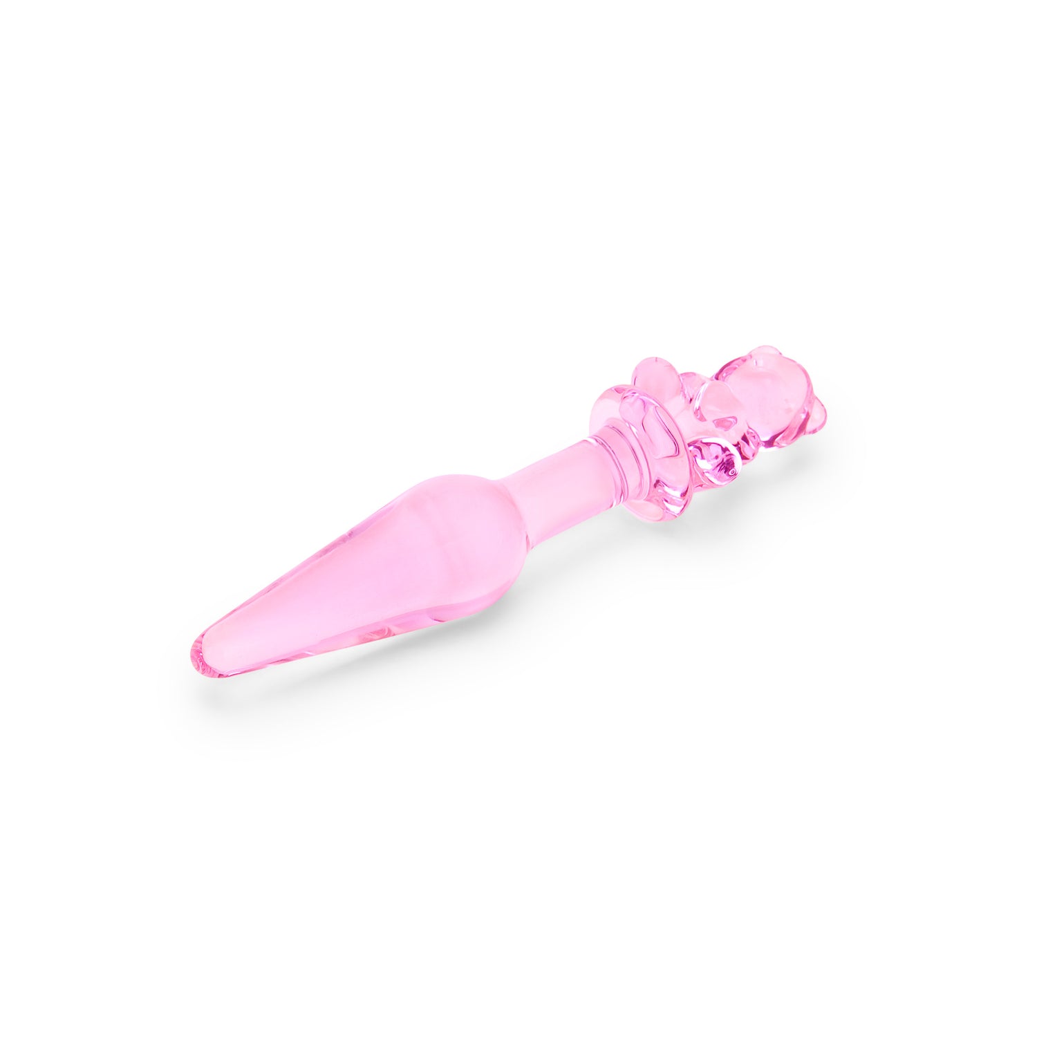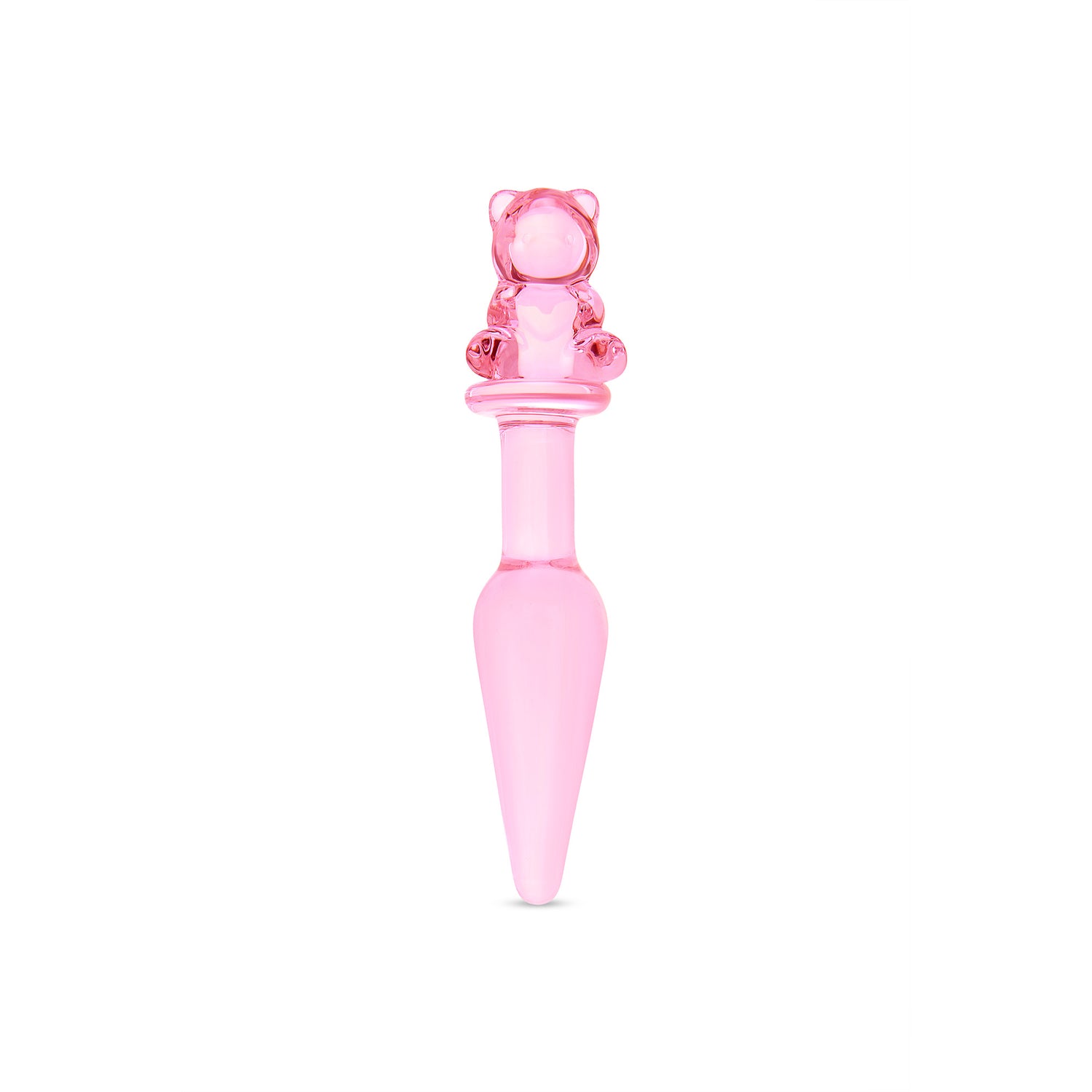 Cuddle up to pleasure with the Gläs 5.5" Beary Pleased Plug, a playful companion handcrafted to perfection. Handblown from soft pink material, this pink borosilicate glass plug features a sleek, tapered tip that allows for effortless insertion. The slim neck ensures a snug fit, while the adorable teddy bear base adds a charming touch of security to your playtime.