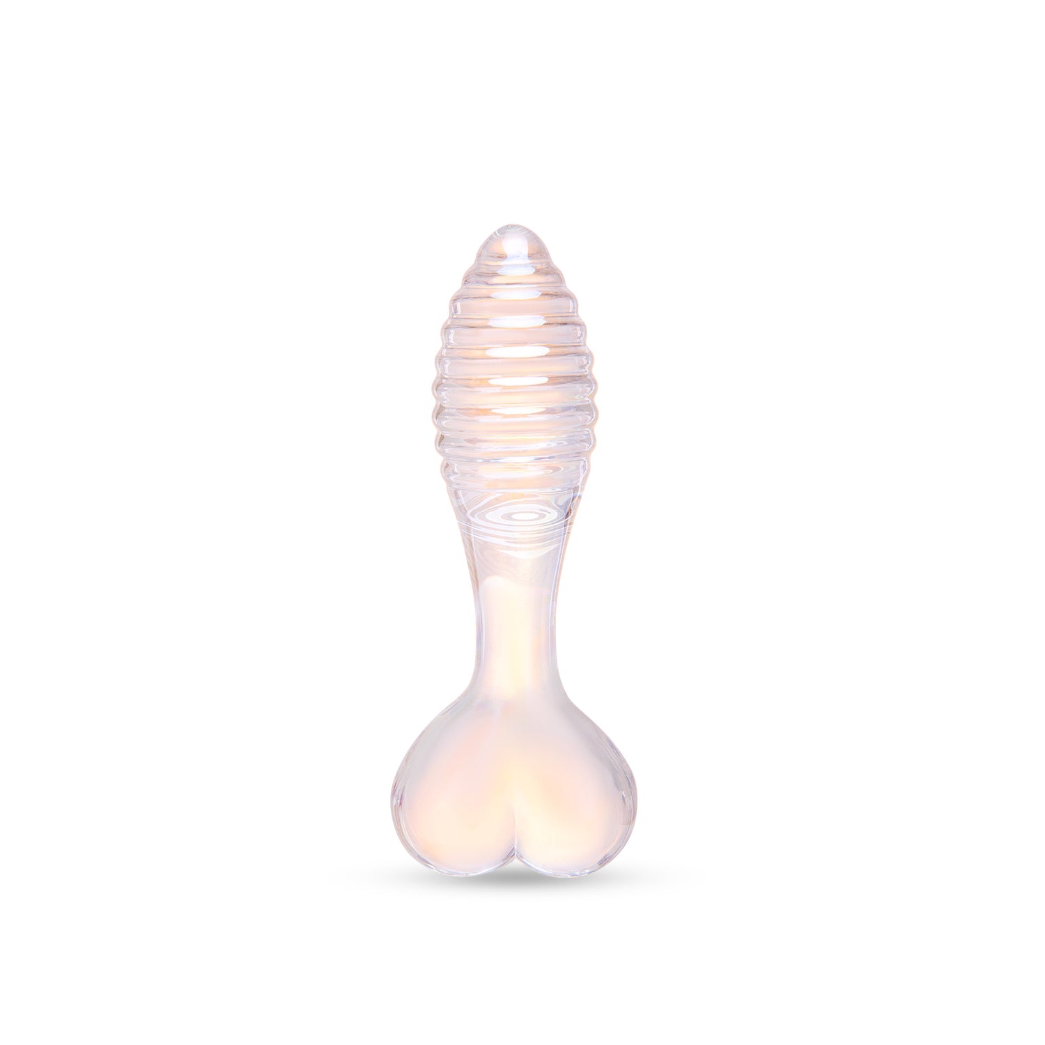 Start your journey with the 5" Groovy Heart, a glass anal plug designed specifically for those seeking a gentle introduction to texture. Its defining feature is a ribbed shaft that provides a subtle, massage-like sensation with every movement, adding variety without being overwhelming. The slim, tapered tip assists with smooth insertion, while the adorable heart-shaped base acts as a reliable safety stop, keeping the plug securely in place during wear.