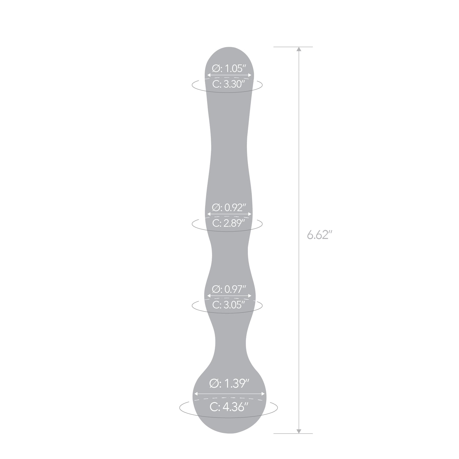 Uncover a spectrum of feeling with the 6.75" Mini Mirage, a dual-ended glass dildo that proves size isn't everything. This piece invites you to alternate between two distinct moods: the beaded end creates a lively, rippled sensation as it moves, while the opposing tapered tip offers a classic, smooth glide for effortless entry. The wavy center bridges these two worlds, allowing you to explore different internal rhythms with a simple flip of the toy.