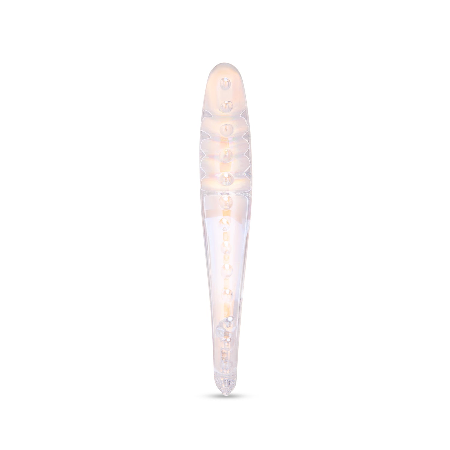 Elevate your control with the elegant ring-shaped handle, designed to loop securely onto your finger for effortless maneuvering, even during the most intense moments. Bathed in a mesmerizing iridescent finish, this temperature-responsive glass dildo adapts to your desire—warming for intimacy or cooling for a thrill. Its non-porous surface is fracture-resistant and sanitizes in seconds, ensuring your collection remains as hygienic and durable as it is beautiful.