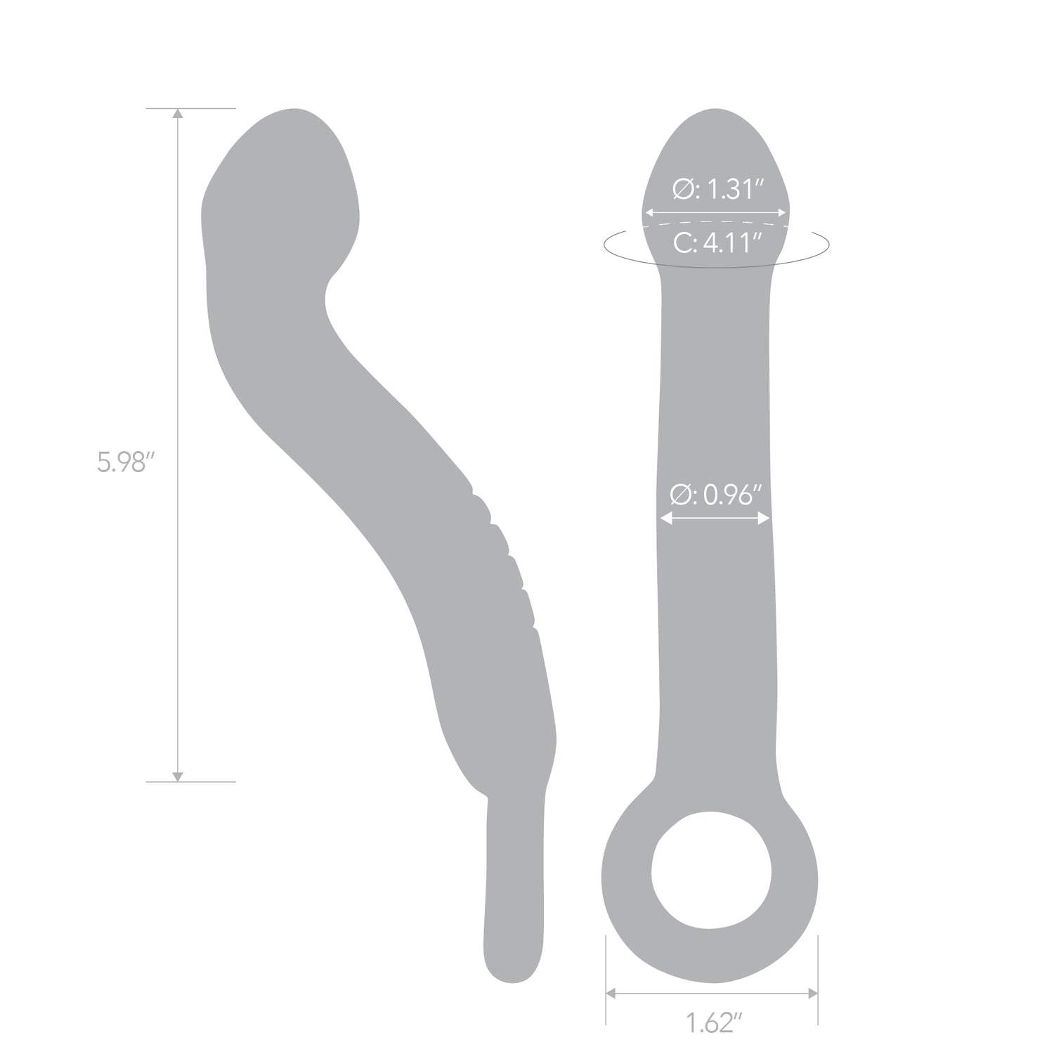 Elevate your play with the 7.75" Prism Pointer, a curved glass dildo designed to combine visual brilliance with functional reach. Its teardrop-shaped tip ensures effortless insertion, while the gently curved shaft is engineered to target internal sweet spots with precision. A series of subtle ribs along the length adds a layer of frictional texture, transforming simple movements into waves of satisfying stimulation.