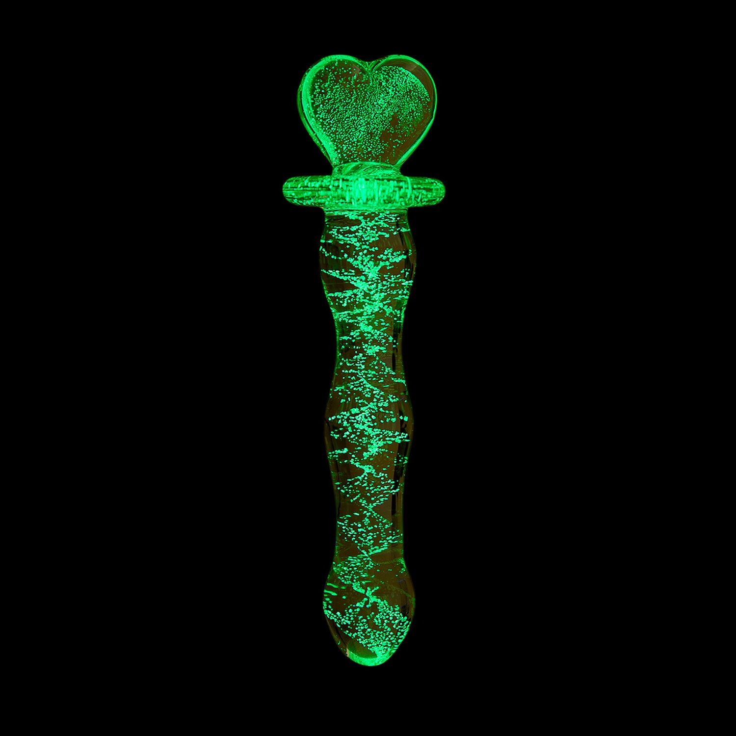 Brighten your intimacy with the 8" Sweet Heat Glow, a glass dildo that merges visual wonder with tactile depth. The design features a luminescent core that glows in the dark, adding a playful light to your sessions. Physically, the rippled shaft creates a series of gentle waves for textured stimulation, while the heart-shaped handle provides a charming yet functional anchor, ensuring your grip remains steady and confident .