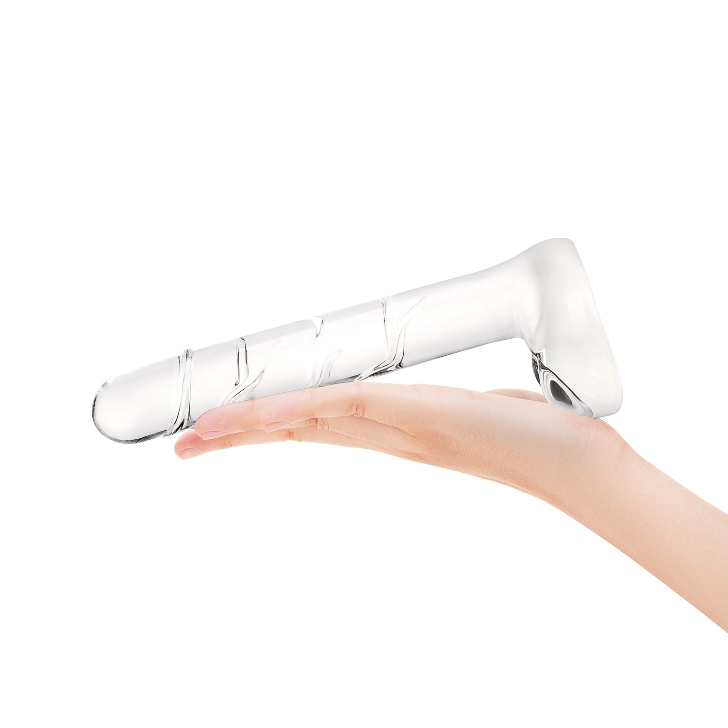 Experience satisfying depth with the Gläs 8" Longshot, a long textured glass dildo designed for full-length indulgence. Handblown from body-safe borosilicate glass, its smooth, rounded tip glides in effortlessly, leading to a gently curved shaft that targets internal hot spots with precision while the textured surface adds exciting friction.