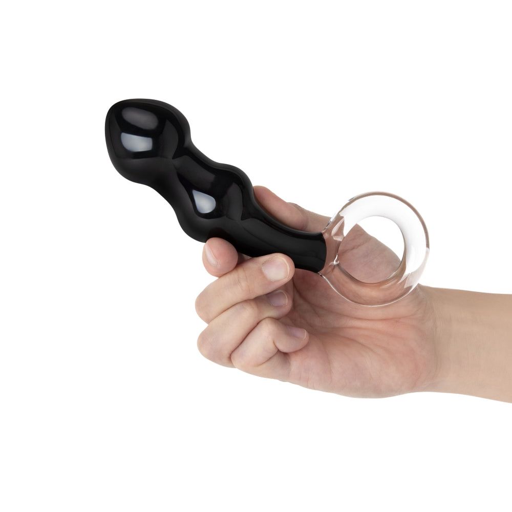 If you're ready to take your anal play to the next level, grab yourself a 6" Curved Black Bulbous Beaded Butt Plug with Clear Ring. Your butt (and your partner) will thank you. This bad boy is designed for maximum pleasure and easy removal - because who has time for a struggle session when you're trying to get your rocks off? The curved shape and graduated beads are specifically designed for prostate activation and anal pleasure and the borosilicate glass exterior makes it as smooth as it is safe.