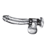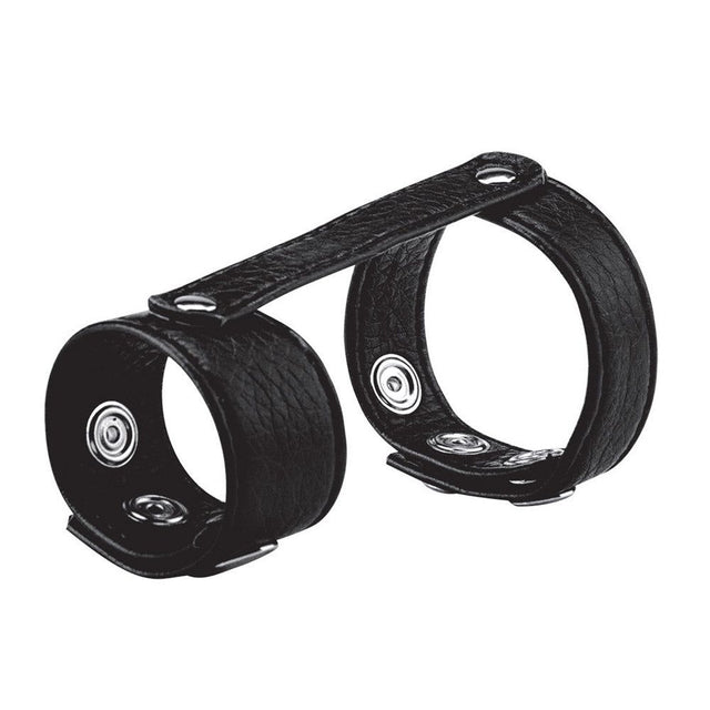 Maximize size and keep your cock begging for release with our Duo Snap Cock & Ball Ring from Blue Line Men. Experience harder, girthier erections for longer, titillating sessions. Torment your testicles and balls simultaneously in our snap-in faux leather restraint that will make your nuts crave for a milking. Place the largest ring around the penis and testicles. Insert penis only into the smaller ring. Apply lubricant if needed. Do not wear for more than 30 minutes.