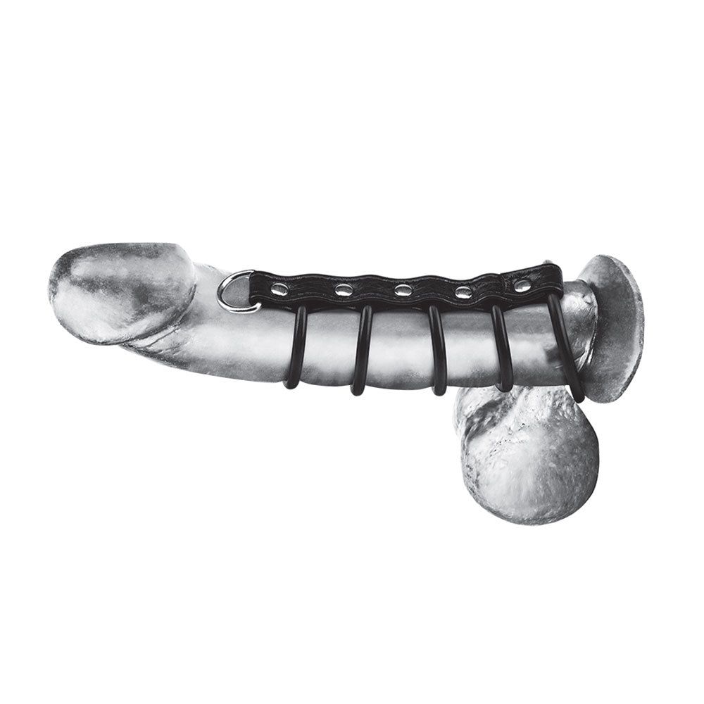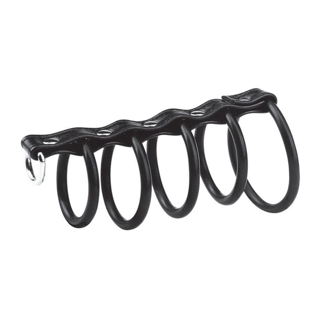 Enter the fifth circle of hell with the 5 Ring Rubber Gates of Hell with Leash Lead to control your sub. Lead them on, literally, by attaching a leash of your choice to the D-ring while holding the penis and testicles hostage. A staple in cock and ball torture, this gates of hell includes five rubber rings. The largest restricts blood flow to the balls, while the smaller four fit over the shaft. Use the smallest ring with a leash to lead by dickxample. No BDSM session is complete without this pleasure pain device. Make it juicy with lube and keep it safe by limiting usage to 30 minutes.