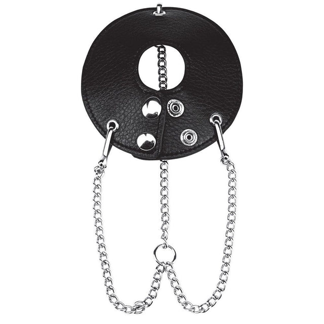 Give your gonads the stretching of a lifetime with our 3.5" Parachute Ball Stretcher from Blue Line Men. Prevent your testicles from pumping with a scrotal grip that will leave your plums pleading to be pinched. Use the center "O" ring to attach extra weight for maximal pressure and pleasure. Wrap the stretcher around the scrotum above the testicles and snap closed with the chain hanging between the legs. Do not wear for more than 30 minutes.