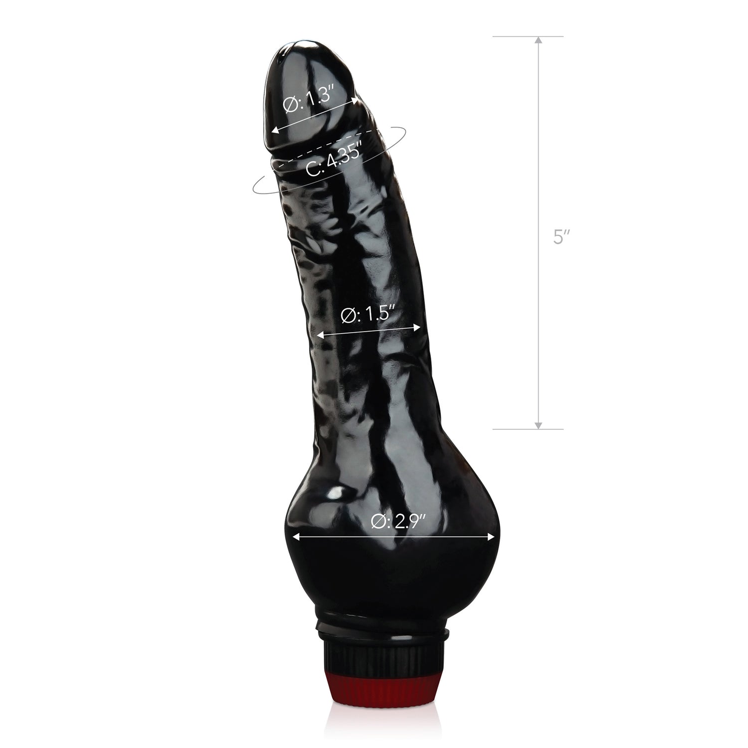 This bulbous black boner brings your orgasms over the edge. Submit your backdoor to the the 5" Vibrating Anal Dildo Prostate Massager with Veins. Deliver power P-Spot vibrations deep and torturous by edging your prostate with this dildo's satiating length and bulbous girth. It's deep black glossy color lends itself to your BDSM aesthetic while its veins pops to enhance its penetrative sensations. You are in control with this vibrating dildo’s easy-to-use turn-dial controller position just at its rear.