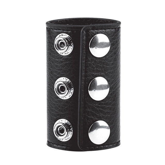 - Wrap the faux leather stretcher above the testicles and snap closed