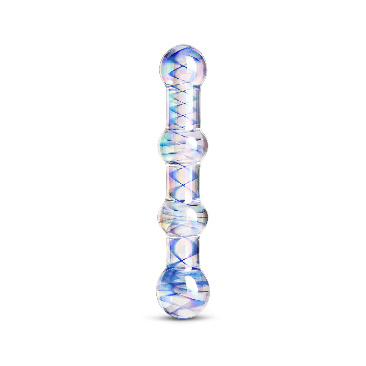 The sensual 7” Blue Wave Double-Ended Beaded Glass Dildo is a must-have for deep stimulation. This dual-ended piece features a slim tip and bulbous end, making it perfect for solo or couples' play. Made of glass, the Swirl is hygienic and easy to clean, while its sleek blue swirl design adds that extra touch of style to your erotic playtime. The slim tip offers easy insertion, while the bulbous end provides powerful, targeted G-spot stimulation.