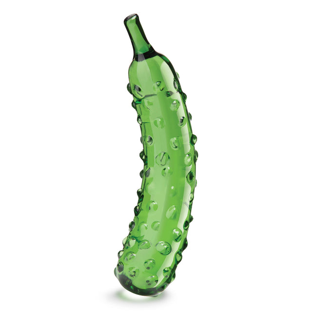 Experience the ultimate in pleasure with the Caressing Cucumber 8.25" Glass Dildo! This elegantly designed handblown glass dildo features a realistic cucumber shape with delightful textured bumps, perfect for delivering satisfying sensations. With an insertable length of 7.25”, it caters to users of all experience levels. Easy to clean and compatible with all lubricants, this delightful dildo is a must-have for your collection. Get ready to enjoy a refreshing adventure!