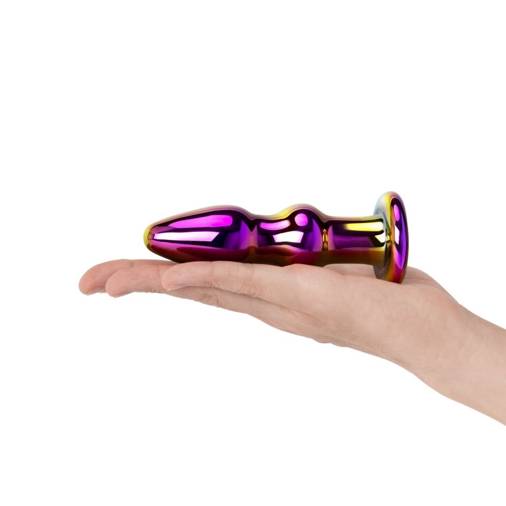Get ready to take your backdoor pleasure to the next level with this large Iridescent Chrome Butt Plug. Sleek, stylish, and perfect for exploring your deepest desires, this huge plug is crafted from top-quality borosilicate glass, this butt plug is not only durable, but also body-safe and easy to clean. The single bead design adds an extra level of sensation, providing incredible pleasure as it slips in and out of you.