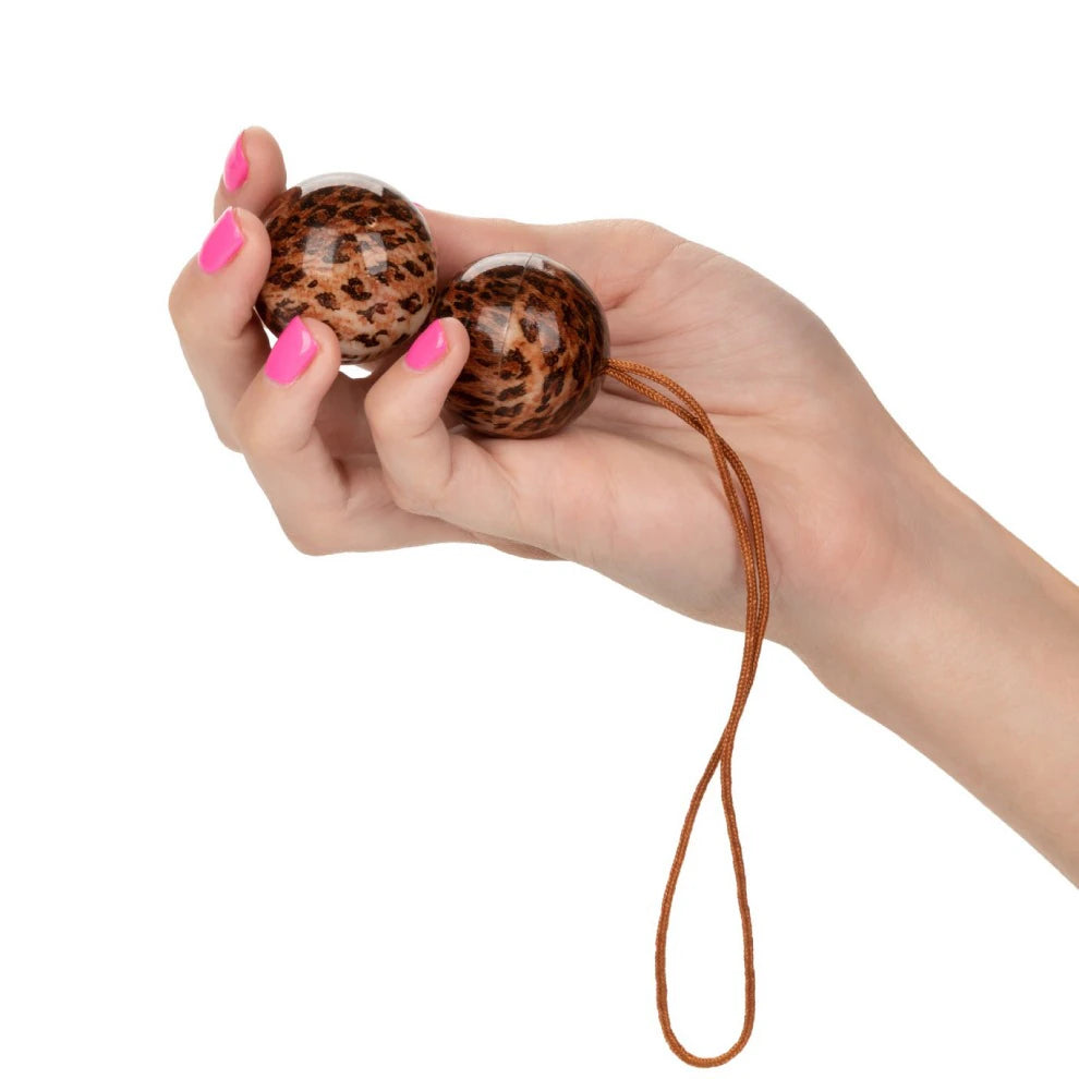 Unleash your wild side with the Leopard Duotone Orgasm Balls, a fierce but sensual way to tone your pelvic muscles. These weighted love balls feature a bold leopard-print design and deliver thrilling internal sensations with every movement. Connected by a strong cord for easy retrieval, they’re designed for comfortable, all-day wear. Whether you’re training your Kegels or indulging in discreet pleasure, these stylish, seductive balls add an exotic edge to your intimate adventures.