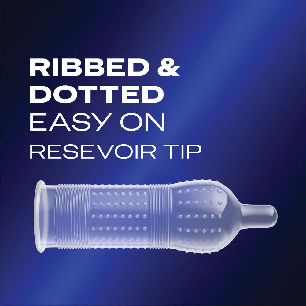Experience heightened pleasure and control with DUREX Performax Intense Desensitizer Lubricant 12 Count Latex Condoms. Crafted with a desensitizing lubricant containing 5% Benzocaine, these condoms help men last longer while the ribbed and dotted texture enhances sensation for her, designed to intensify every moment.