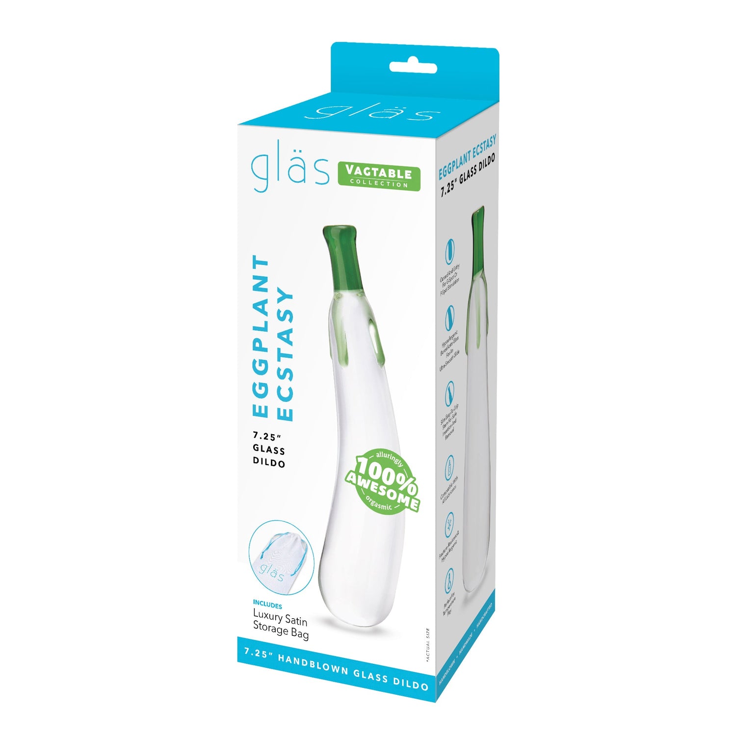 Elevate your pleasure with the Eggplant Ecstasy 7.25" Glass Dildo! This uniquely designed handblown glass dildo features a fun eggplant shape, perfectly crafted to deliver delightful sensations. With an insertable length of 5.75”, it's ideal for those seeking a playful yet satisfying experience. Easy to clean and compatible with all lubricants, this dildo is a fantastic addition to your collection. Get ready to explore new heights of ecstasy!