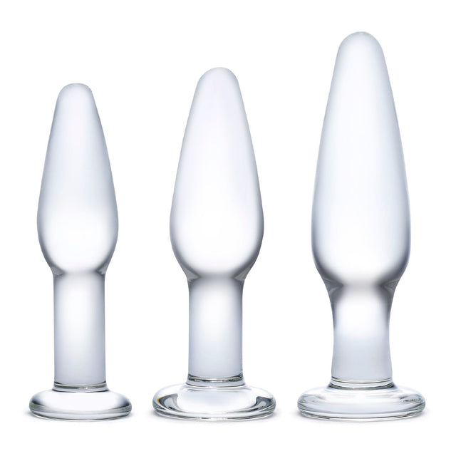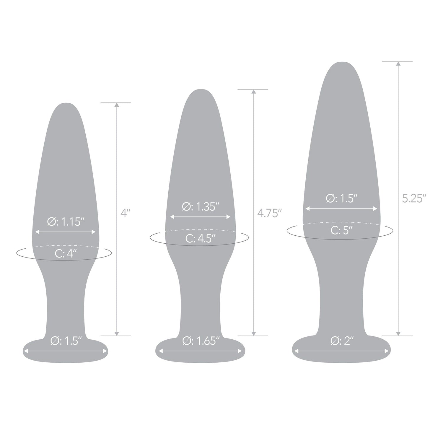 When you’re finally ready to open up to the thrills and mind-blowing sensations of backdoor play, Glas’ 3-piece Glass Anal Training Kit will guide you on your journey of sexual exploration. Perfect for beginners and anyone who wants to expand their anal pleasure possibilities, this kit introduces you to anal play with a small plug that’s just over four inches. Once the user is ready to step up to the next level of play, the Medium Plug measures in at five inches. Finally, the Large plug stands tall at 5 ½ inches. Each plug in the kit prepares you for the next largest-sized plug until you find the one that is perfect for you in the moment.