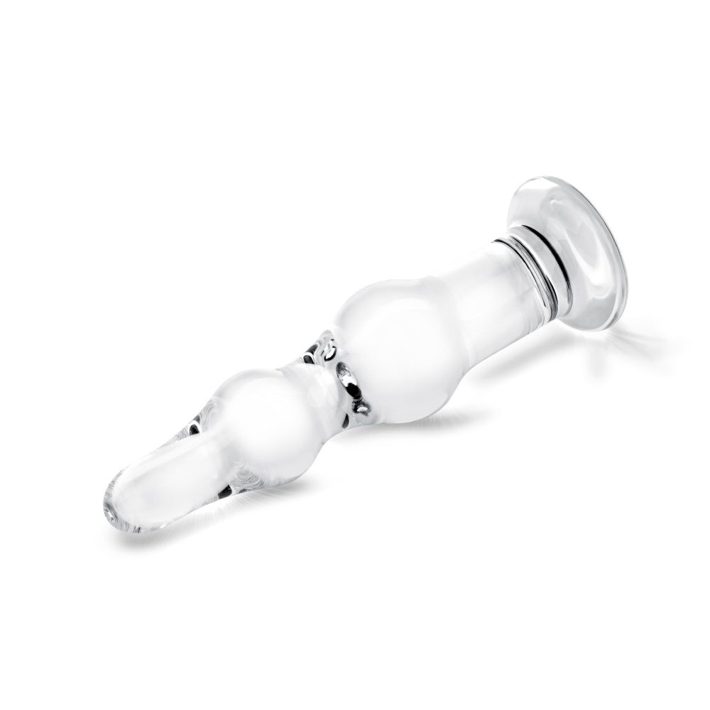 The 6.5” Beaded Glass Butt Plug is perfectly shaped for users of all levels. The tapered tip is easy to insert while the beaded shaft provides extra stimulation as you go deeper. A flared base ensures safe insertion, making this plug a great choice for anal training, plus it allows the plug to be paired with a harness. Made from beautiful glass and designed to be nonporous, this hypoallergenic toy is body-safe and built for long-lasting use.