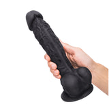 The Pink Vibe Real Deal Realistic 8-Inch Silicone Dildo with Balls deserves to be saluted when it's standing at attention. With 7 inches of insertable length and 5 inches of mind-blowing circumference, this lifelike dildo with veins and realistic texture is made for pleasure. Easily attach to a pegging harness or use the suction cup to position this dildo to any surface to make you squeal with delight on the ride of your life.