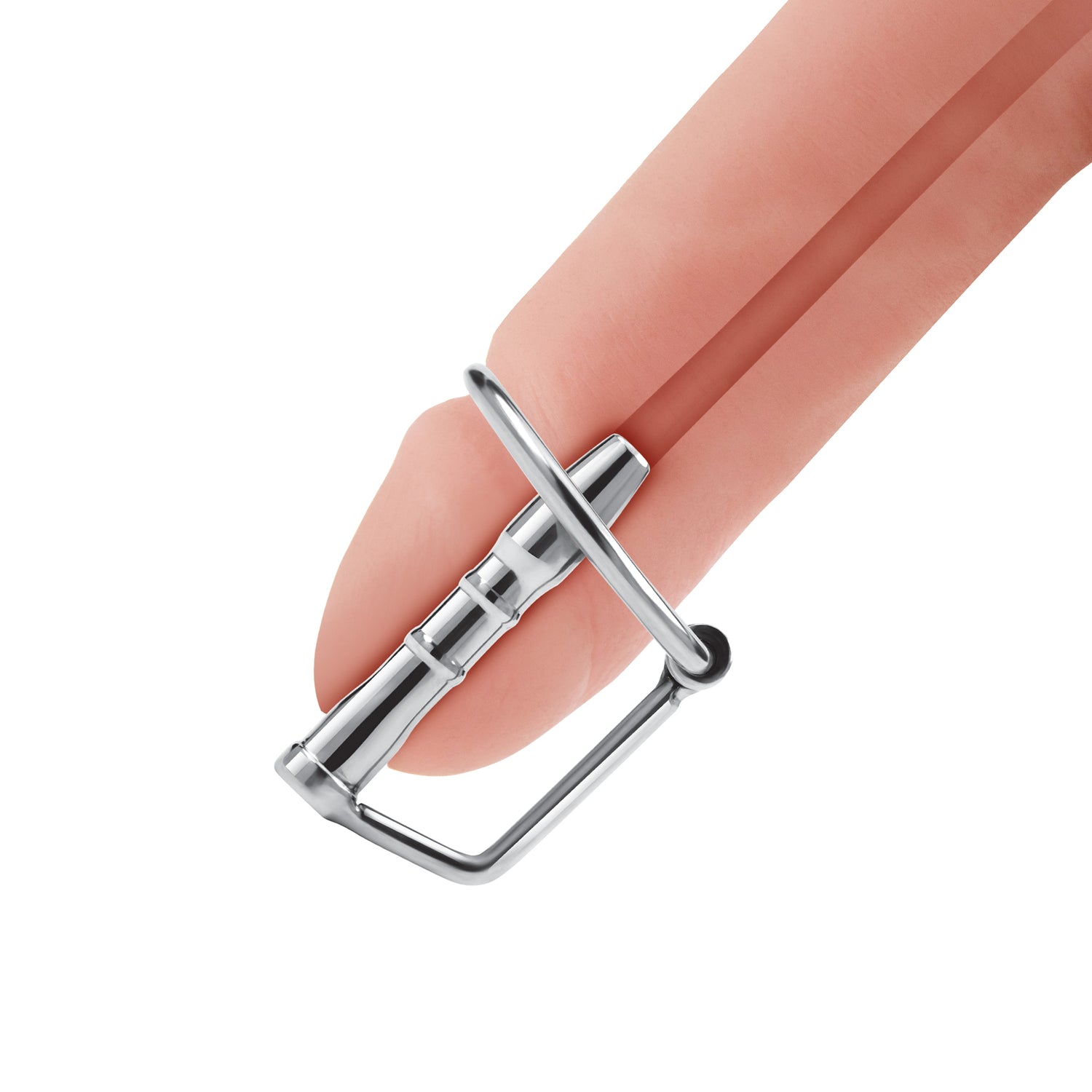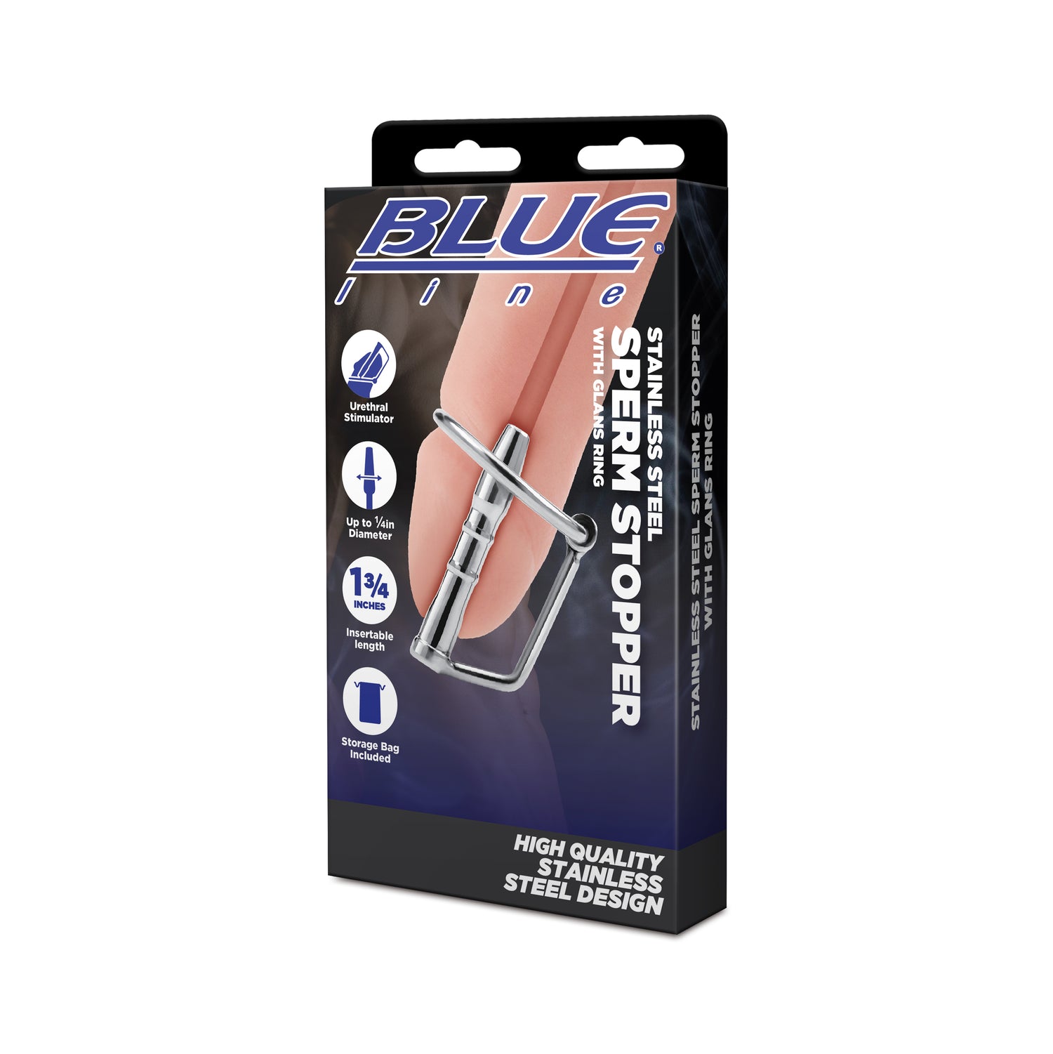 Keep from cumming till you know you need it with the Stainless Steel Sperm Stopper With Glans Ring from Blue Line. This semen stint applies pressure to your frenulum and glans while massaging your urethra with every attempted pulse of ejaculation.